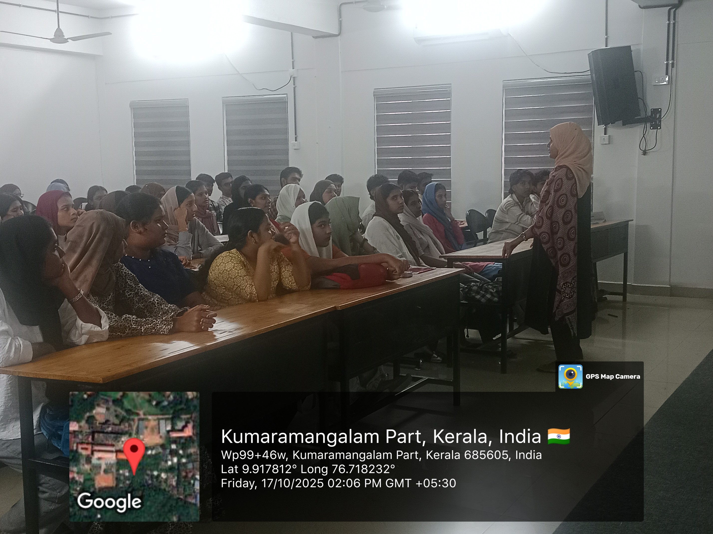 The COPO Sensitization Class for the First Semester B. Pharm 2025 Batch was conducted on 17 October 2025 at 2:00 PM, led by Ms. Nesni M. Makkar, Associate Professor, Department of Pharmacology, at Al Azhar College of Pharmacy. The session provided students with a clear understanding of the Course Outcomes (COs) and Program Outcomes (POs) framework, emphasizing its significance in outcome-based education and academic planning. The programme helped students familiarize themselves with the expectations of the curriculum and the importance of aligning learning with measurable outcomes, ensuring a strong academic foundation from the very beginning of their course.