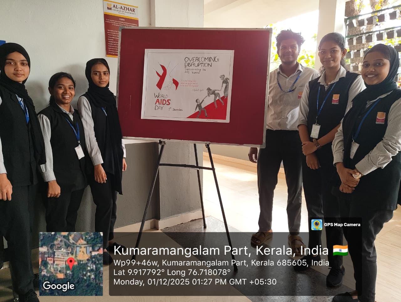World AIDS Day was observed on 1st December 2025 at the Seminar Hall of Al Azhar College of Pharmacy with an awareness programme and poster-making activity, organized jointly by IQAC, SSGP, and NSS. The programme was coordinated by Ms. Anju Jose and Ms. Jeena Ann John, Associate Professors, with the objective of creating awareness about HIV/AIDS, its prevention, and the importance of eliminating stigma and discrimination. Students actively participated in the poster-making competition, creatively expressing key messages related to awareness, prevention, and social responsibility, making the programme informative, engaging, and socially relevant.