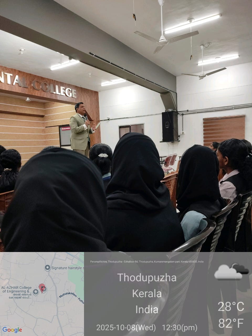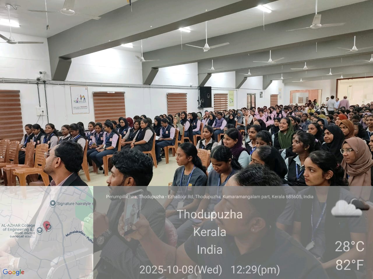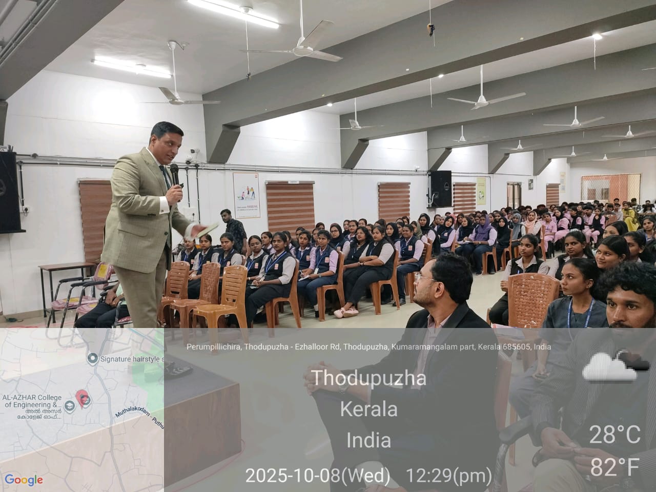The World Mental Health Day 2025 was observed on 08 October 2025 at Al Azhar College of Pharmacy, organized by IQAC in association with SSGP, featuring a Mental Health Awareness and Suicide Prevention Workshop. The session was led by Mr. Issac Agarwal, Founder and President of the Kinging Youth Federation, who emphasized the importance of emotional well-being, early recognition of mental health concerns, and strategies to support individuals in distress. The workshop encouraged students to break the stigma surrounding mental health, seek timely help, and promote a supportive environment within the campus. The programme successfully enhanced understanding and awareness of mental health and suicide prevention among the participants.