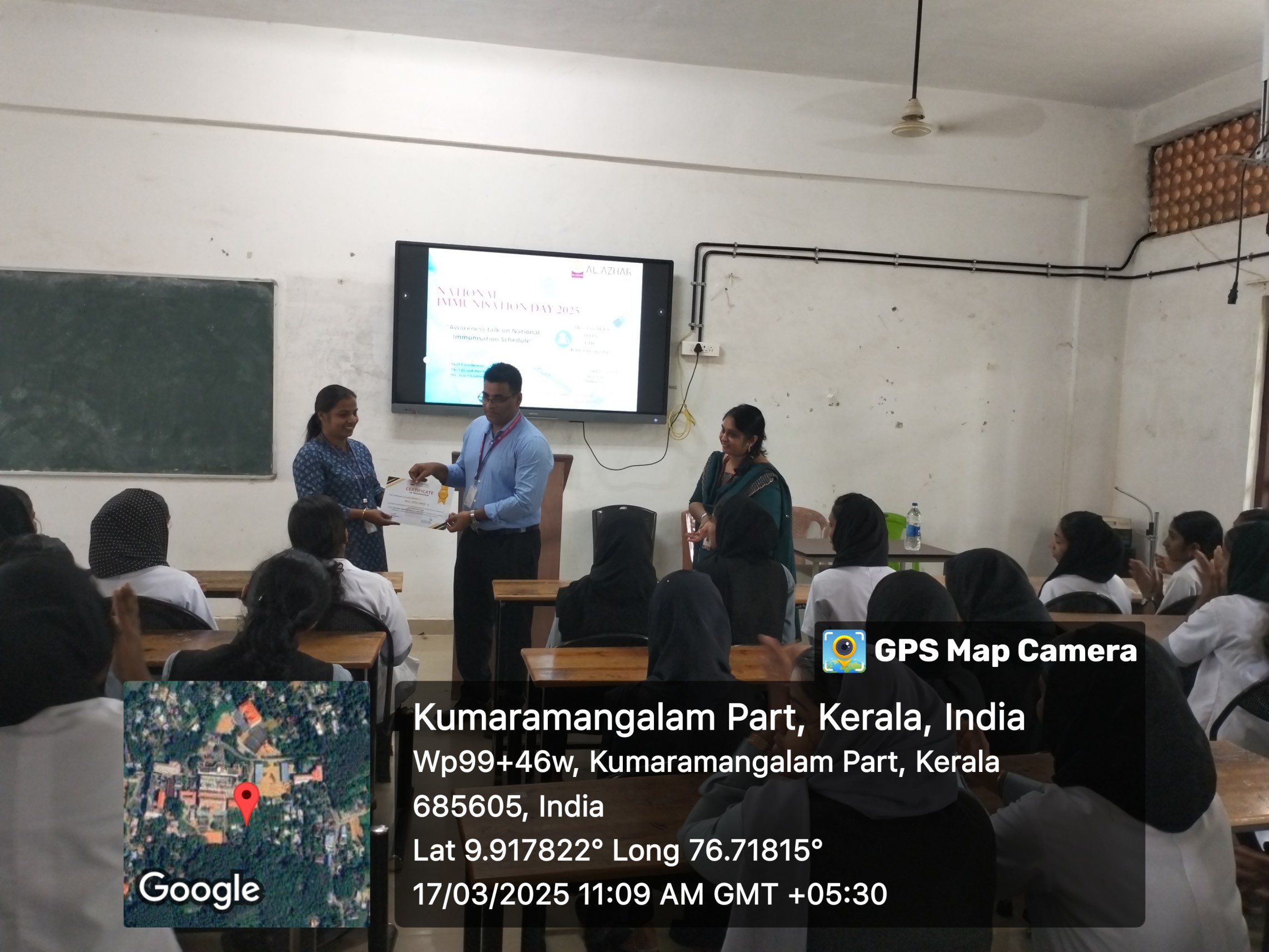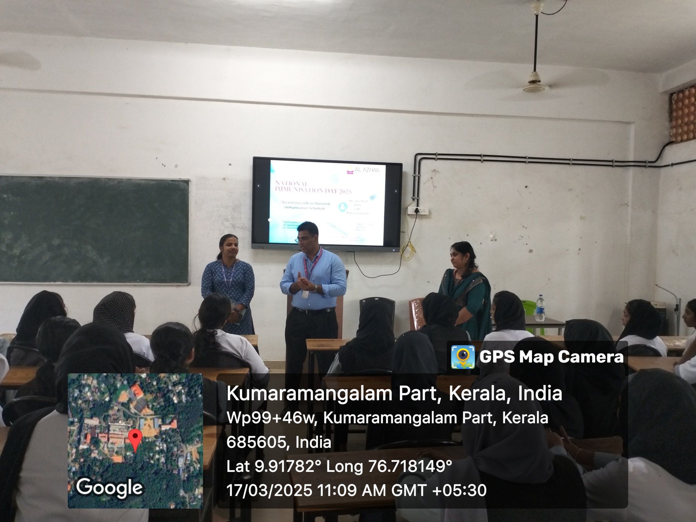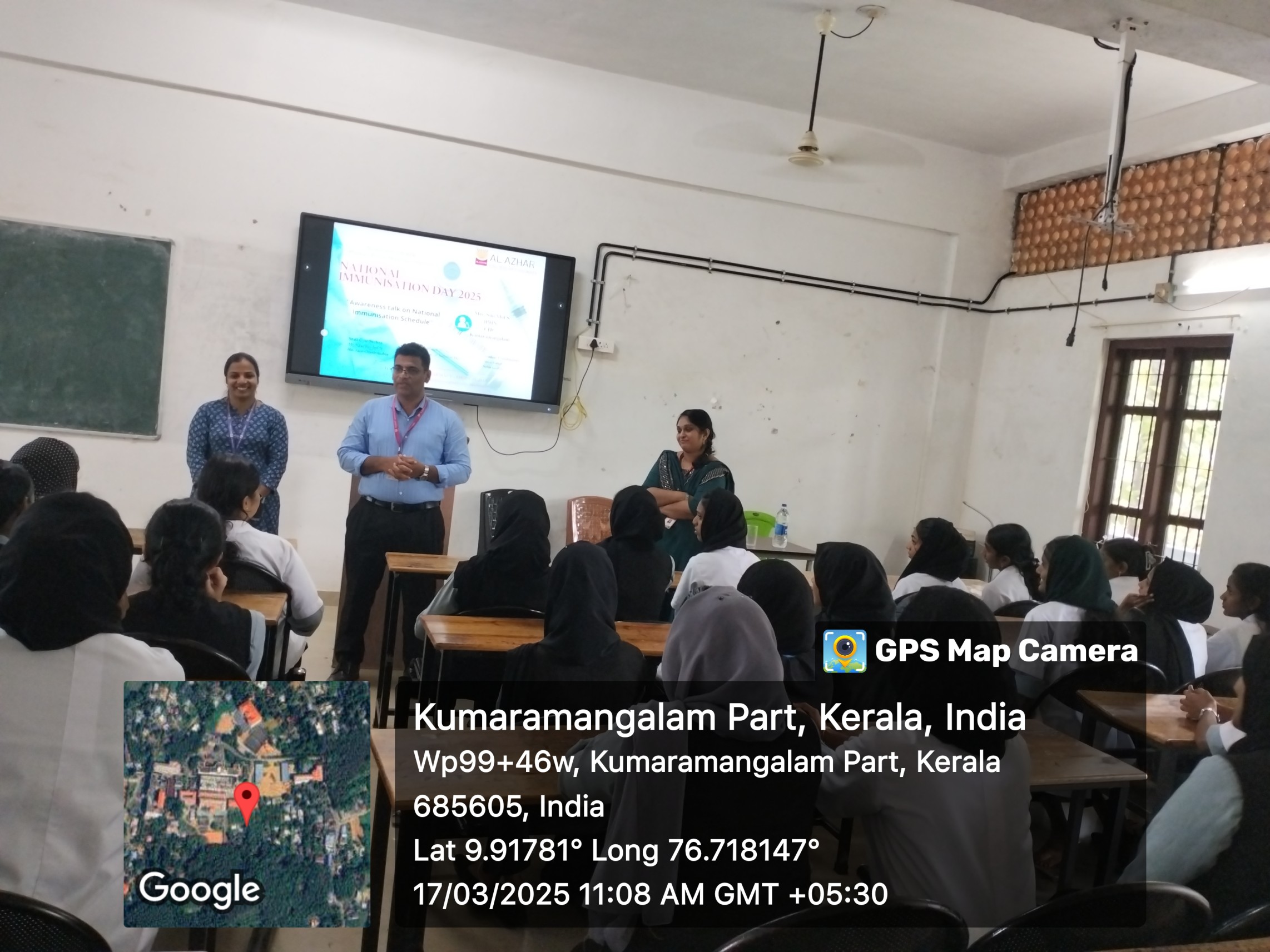 Al Azhar College of Pharmacy observed on 17th March 2025 with an awareness talk on the National Immunization Schedule. The session, organized by IQAC in association with the Pharmacy Practice Department, was conducted at the Seminar Hall. Ms. Sini Mol S, JPHN, CHC, Kumaramangalam, led the session, providing valuable insights into the importance of immunization and its role in public health.